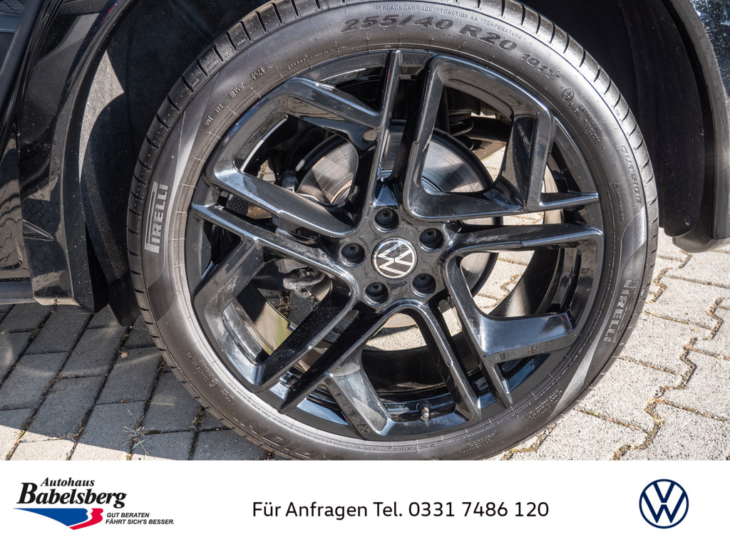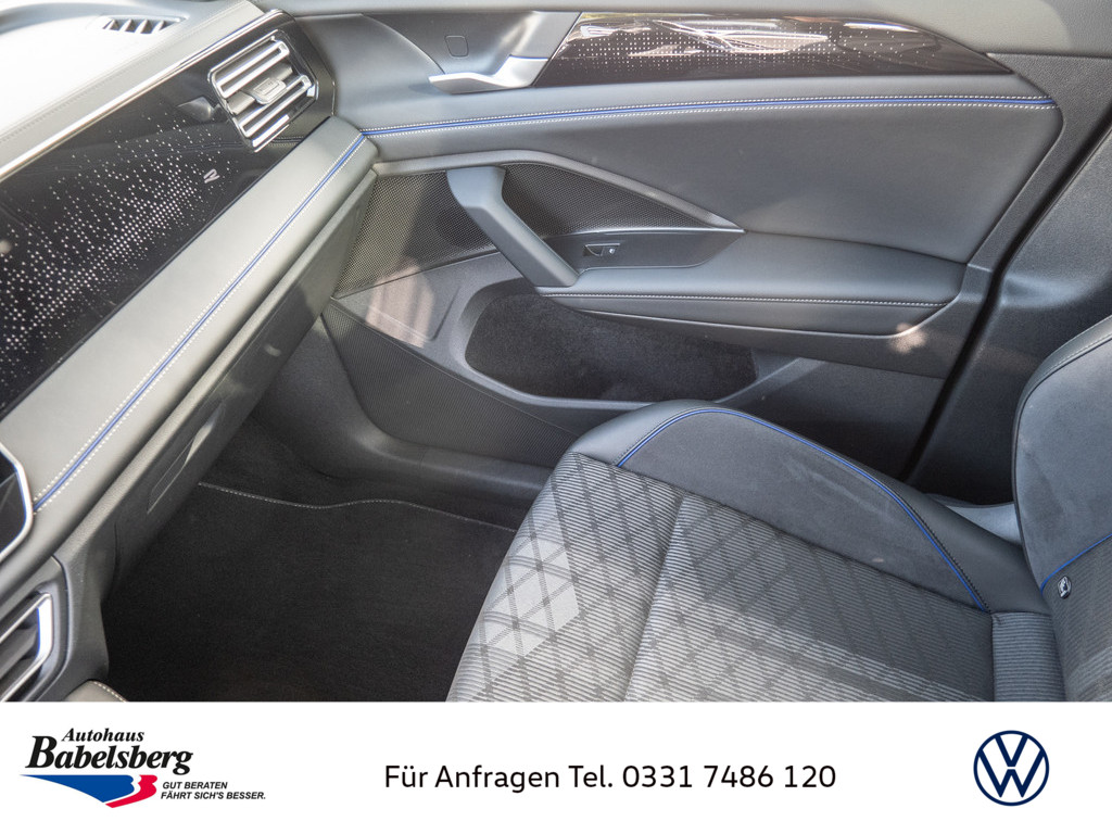 Infotainment-System mit 38,1-cm-Display (15 Zoll), Infotainment-Paket Discover Pro Max, Radsicherungen mit erweitertem Diebstahlschutz, Reifen 255/40 R 20, Zierleisten in Schwarz hochglaenzend an den Seitenfenstern, Stossfaenger in sportlichem Design, Lufteinlass mit Leiste in Schwarz hochglaenzend, Vorbereitet fuer VW Connect und VW Connect Plus, Ohne Fast Lane Modell, Mittelkonsole gepolstert, Dekor-Set R-Line, durchleuchtet, Mit UNECE CS&SU, R-Line, Beifahrersitzlehne nicht umklappbar, Notruf-Service, Laufzeit 10 Jahre ab Erstauslieferung, Voraussetzung: Verfuegbarkeit benoetigter Mobilfunknetze, Fahrzeugklassen-Differenzierung -570-, Hinterachsgewicht Ausfuehrung 4, Vorbereitung Alcohol Interlock, Ohne Mode3 Ladekabel