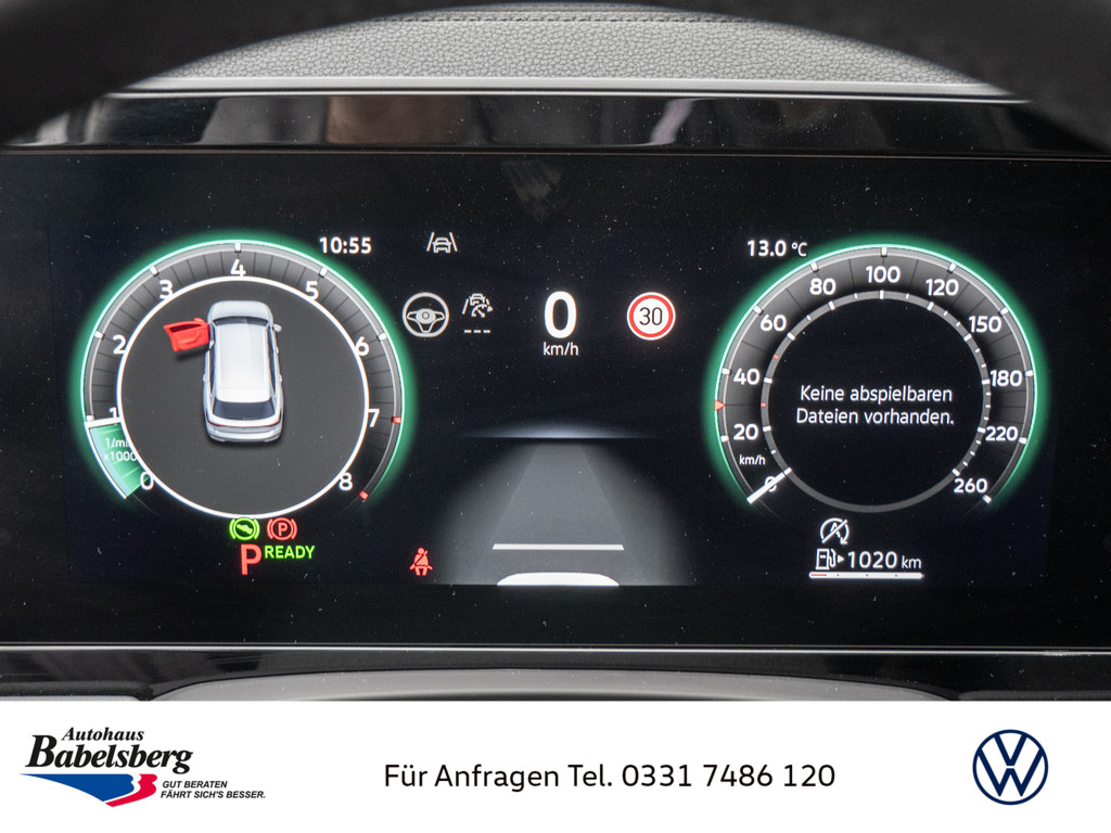 Radsicherungen mit erweitertem Diebstahlschutz, Vorbereitet fuer VW Connect und VW Connect Plus, Sitzmittelbahnen der Vordersitze und der aeusseren Ruecksitzplaetze in Mikrovlies ArtVelours Eco, Kraftstofftank mit 66 l Fassungsvermoegen, Stossfaenger in Wagenfarbe, Lufteinlass mit Chromleisten, Kuehlergrill mit Chromleiste, Mit UNECE CS&SU, Beifahrersitzlehne nicht umklappbar, Fahrzeugklassen-Differenzierung -3J0-, Notruf-Service, Laufzeit 10 Jahre ab Erstauslieferung, Voraussetzung: Verfuegbarkeit benoetigter Mobilfunknetze, Ohne Dynamic Drive Control, Schluesselloses Startsystem Keyless Start ohne SAFE-Verriegelung, Vorbereitung Alcohol Interlock, Infotainment-System mit 32,7-cm-Display (12,9 Zoll), Ohne Mode3 Ladekabel