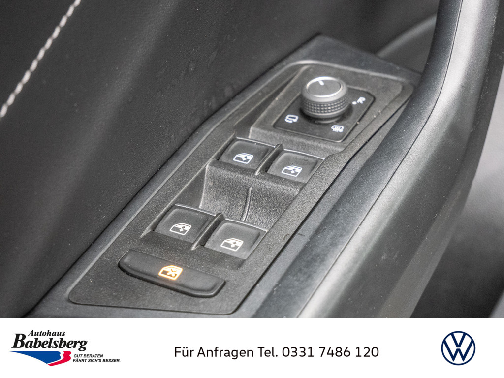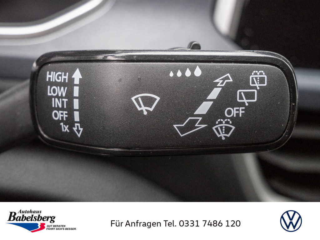 Vorbereitet fuer VW Connect und VW Connect Plus, Schalthebelknauf in Leder, Dekoreinlagen Deep Iron Grey fuer Instrumententafel, Mittelkonsole und Tuerverkleidungen vorn, 6 Lautsprecher, Mit UNECE CS (R155) ohne SU (R156), Notruf-Service, Laufzeit 10 Jahre ab Erstauslieferung, Voraussetzung: Verfuegbarkeit benoetigter Mobilfunknetze, Ohne Dynamic Drive Control
