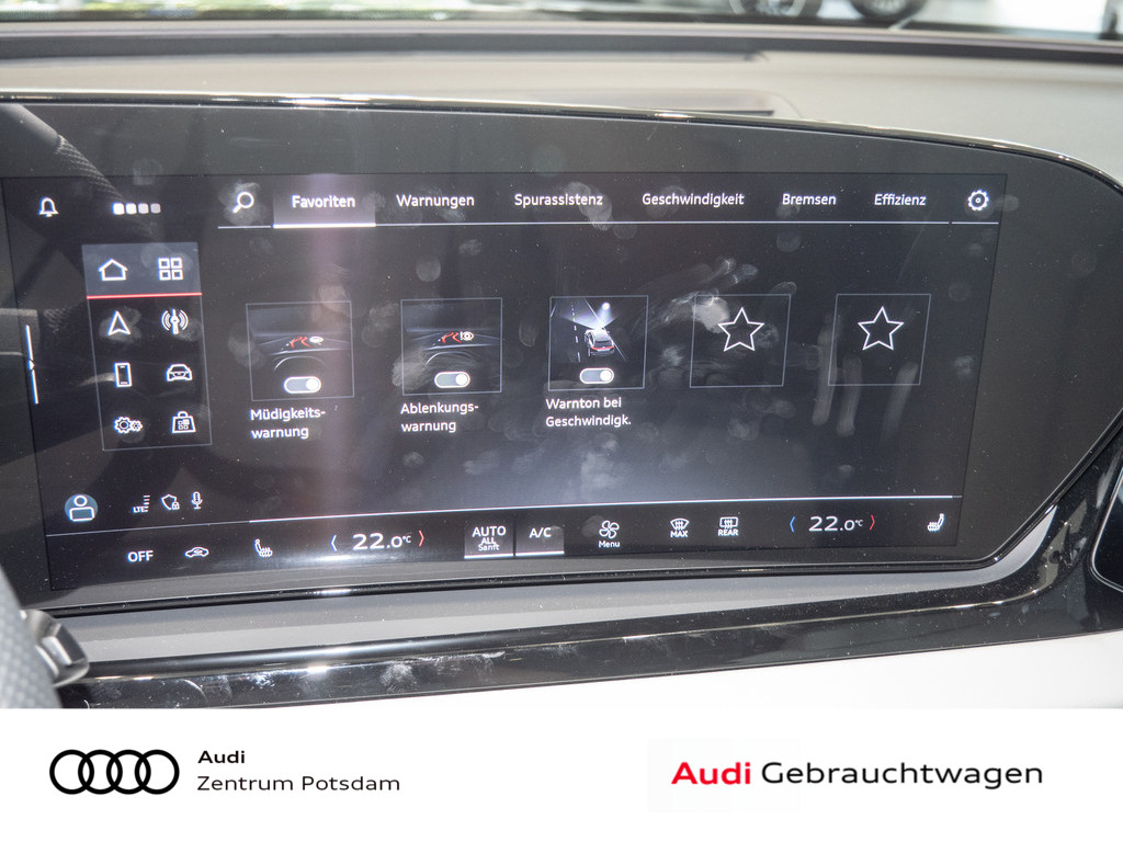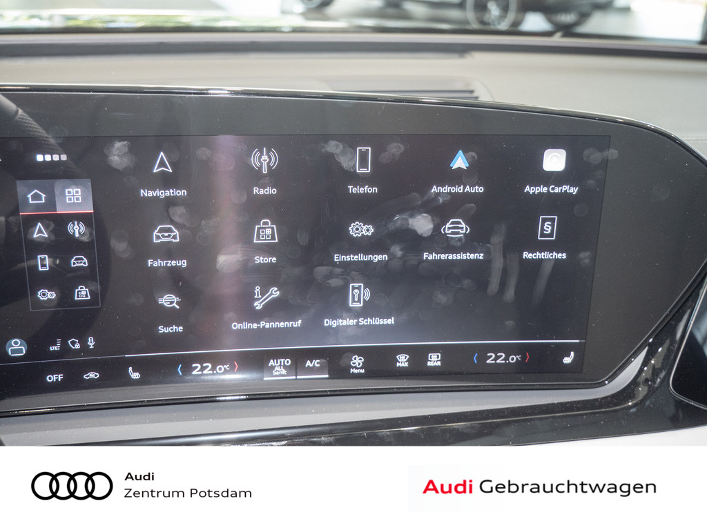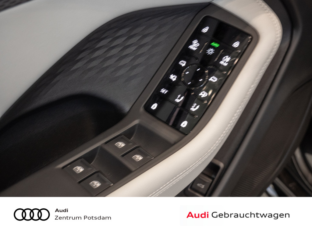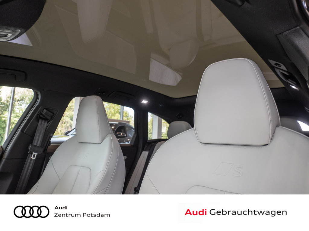 Panorama-Glasdach mit schaltbarer Transparenz, Dekoreinlagen Aluminium matt gebuerstet mit Linearpraegung anthrazit, Mobilfunk-Signalverstaerker Typ 1, Interieur S mit Sportsitzen, Leder/Kunstleder-Kombination grau, Akustikverglasung Tuer- und Seitenscheiben, Audi Neuwagen-reifen garantie, Modellkennzeichnung am Heck, Abgaskonzept, WLTP3 M1, N1-I//EU6EB, Fahrzeugklassen-Differenzierung-4P0/4PA-, Fond-Hinweis, Ohne Netzkabel fuer Industriestecker fuer das e-tron Ladesystem, Ohne Ladekabel Mode 3 fuer oeffentliches Laden (AC), funktions paket Basis ( Nur fuer Audi ), Ohne integriertes Mautsystem, Ohne elektronisches Fahrtenbuch, Ausstattung 1, FOD Funktionen online verfuegbar, Ohne Vorkonditionierung, Reifen HL 255/35 R21 101Y XL, Datenmodul Europa, Verkehrszeichenbasierter Geschwindigkeitsbegrenzer, Steuerung SWIN, Ohne Wandhalterung, Ohne Ladesystem