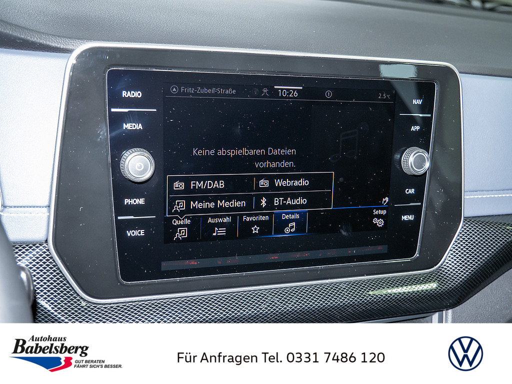 6 Lautsprecher, Vorbereitet fuer "VW Connect" und "VW Connect Plus", Schalthebelknauf in Leder, Notruf-Service, Laufzeit 10 Jahre ab Erstauslieferung, Voraussetzung: Verfuegbarkeit benoetigter Mobilfunknetze, Dekoreinlagen "Style" fuer Instrumententafel