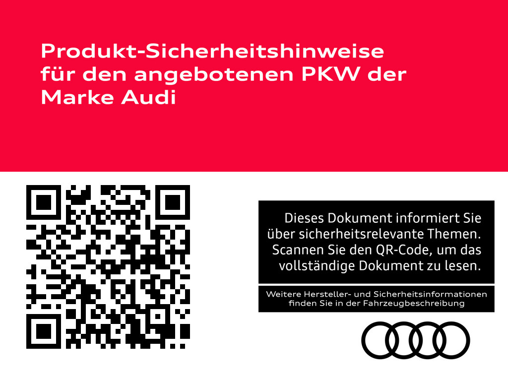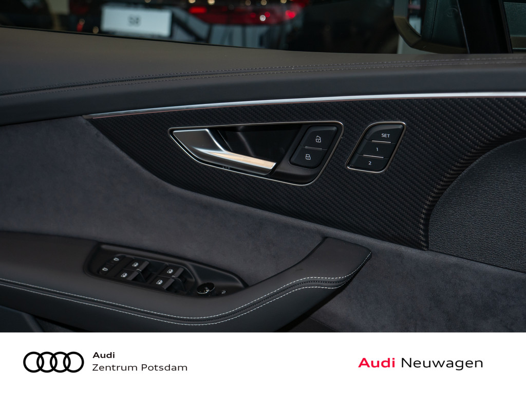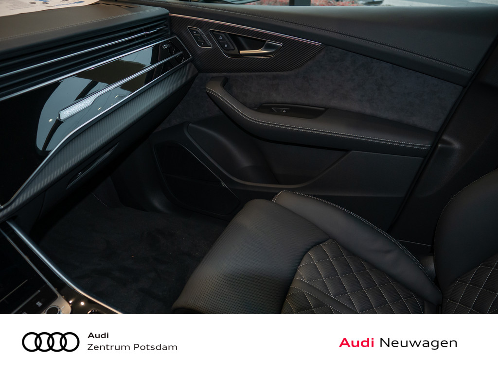 Sonnenschutzrollo, Erweiterte Interieurelemente Leder, Mobilfunk-Signalverstaerker Typ 1, 3. Sitzreihe, USB-Anschluesse mit Ladefunktion in erster und zweiter Sitzreihe, Akustikverglasung Tuer- und Seitenscheiben, Audi Neuwagen-reifen garantie, Ohne Aktion, Modellkennzeichnung am Heck, Abgaskonzept, WLTP3 M1, N1-I//EU6EB, Ohne Netzkabel fuer Industriestecker fuer das e-tron Ladesystem, Ohne Ladekabel Mode 3 fuer oeffentliches Laden (AC), Ohne integriertes Mautsystem, Ohne elektronisches Fahrtenbuch, S-Modell, 8-Zylinder-Ottomotor 4,0L/373 KW Biturbo, FSI homogen Grundmotor ist: TV7/T1M, Ohne Fahrzeugladekabel, Ohne e-tron Ladesystem kompakt (AC), ohne Netzkabel fuer Haushaltsstecker, Ohne AdBlue-Tank, Variante " S ", Ohne Vorkonditionierung, Ohne kombinierte Laengs- und Querfuehrung, Ohne akustisches Fahrzeug-Warnsystem, Bedientasten schwarz glaenzend mit haptischem Feedback und Aluminiumoptik Interieur, Reifen 285/35 R22 106Y xl Rollwiderstansoptimiert, Ottomotor, Datenmodul Europa, Steuerung SWIN, Ohne Wandhalterung