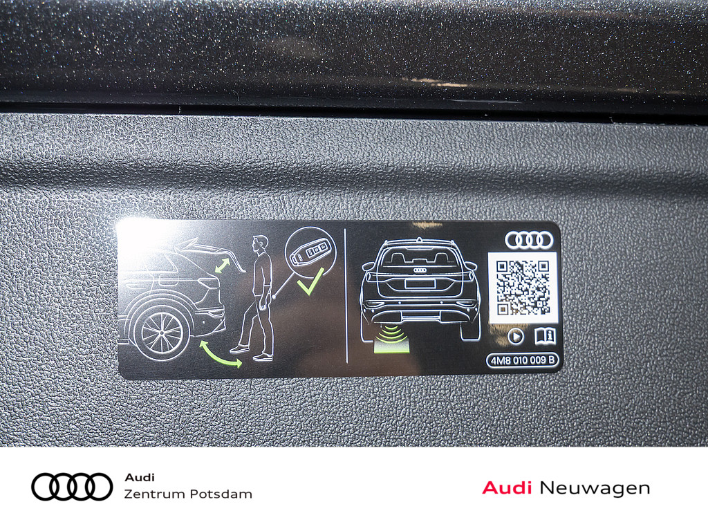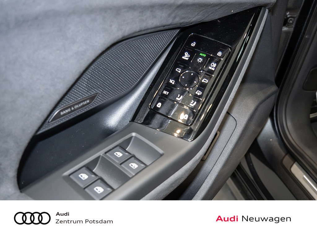 Audi drive select assistant, Dekoreinlagen Aluminium matt gebuerstet mit Linearpraegung anthrazit, Bang & Olufsen Premium Soundsystem mit 3D-Klang und Kopfstuetzenlautsprechern, MMI experience plus mit Bang & Olufsen Premium Soundsystem, Interieurapplikationen Vanadiumoptik, Audi Neuwagen-reifen garantie, o.b.Abgas, Fahrzeugklassen-Differenzierung-F5A/F5F-, Ladeklappe elektrisch, Modellkennzeichnung am Heck, Dach ohne Glaseinsatz, Fensterzierleisten Aluminiumoptik, Aussenspiegel Fahrerseite asphaerisch, Beifahrerseite asphaerisch, Ohne Netzkabel fuer Industriestecker fuer das e-tron Ladesystem, Ladekabel Mode 3 fuer oeffentliches Laden bis zu 22 kW (AC), lade paket Basis ( Nur fuer Audi ), Ohne integriertes Mautsystem, Ohne elektronisches Fahrtenbuch, Laendercluster "Sonstige Genehmigungen", Ausstattung 1, Aufmerksamkeits- und Muedigkeitserkennung mit Fahrerbeobachtung, FOD Funktionen online verfuegbar, Hochvolt-Batterie 100 kWh (brutto), Datenmodul Europa, Querverkehrassistent vorn, Sportback, Verkehrszeichenbasierter Geschwindigkeitsbegrenzer, Elektro-Motor: Hoechste konsolidierte Nutzleistung/Nutzleistung 315 KW Grundmotor ist: N20/N26/T0Y, Steuerung SWIN, Ohne Wandhalterung, Ohne Ladesystem, Reifen 235/45 R20 100H XL vorn | 265/40 R20 104H XL hinten, Softwareverbund Ausfuehrung 4, Serviceanzeige 2 Jahre (fest) ohne km Elektro-Fahrzeug