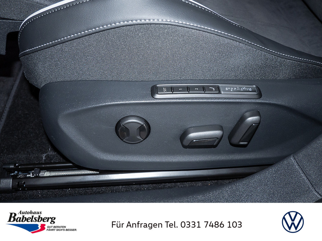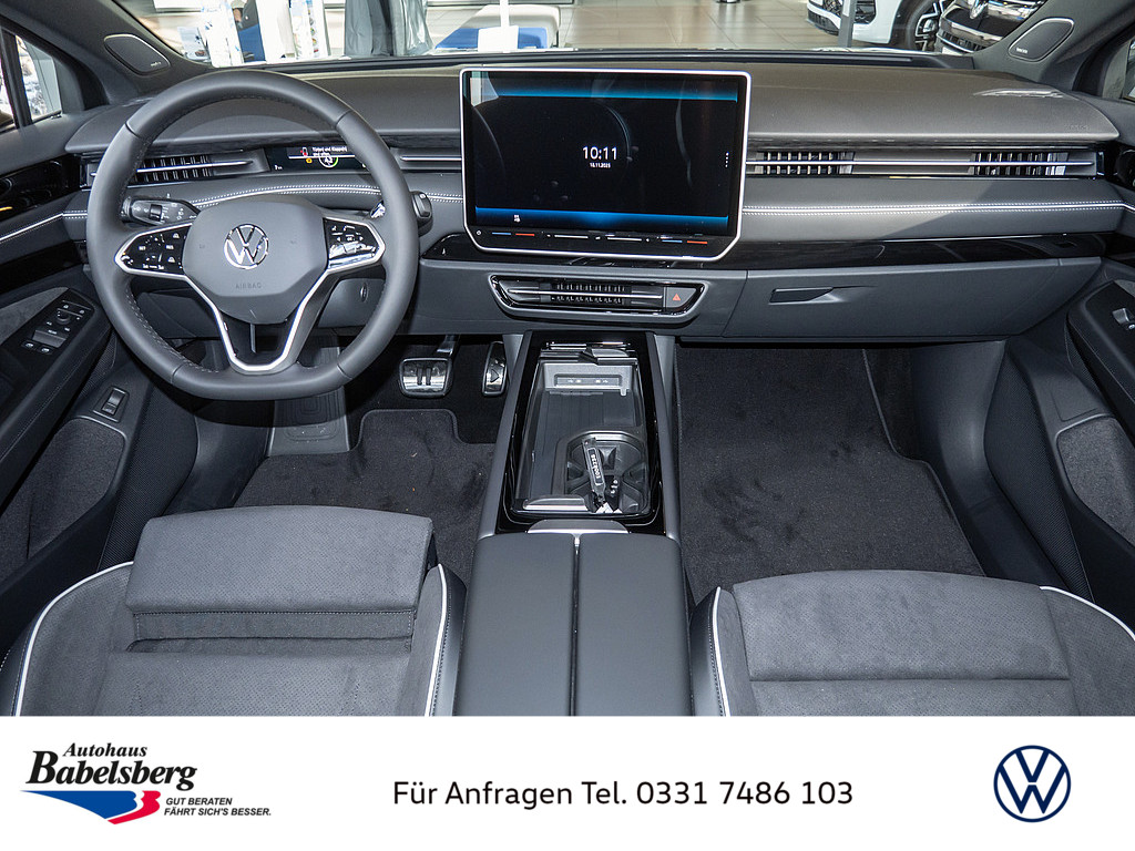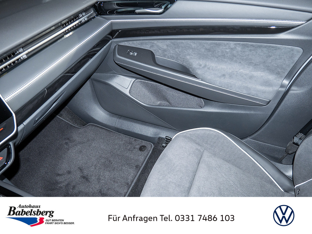 Interieurpaket "Plus", Komfortpaket inkl. Navigationssystem "Discover Pro Max", Winterraeder "Hudson" (zusaetzlich) 8 J x 19 vorn, 8,5 J x 19 hinten, Winterreifen 235/50 R 19 T/255/45 R 19 T, Allwetterfussmatten vorne und hinten, Titanschwarz, "Clever Cargo"-Paket, o.b.Abgas, Mit besondere Anforderungen an die Lenksaeulenverriegelung, Radsicherungen mit erweitertem Diebstahlschutz, Ohne Bidirektionales Laden, Fahrzeugklassen-Differenzierung -14B-, Getriebe Uebersetzung 7,915, DC/DC Wandler 3,0 KW, Zellmodul L, Pro S, Elektro-Motor: Hoechste konsolidierte Nutzleistung/Nutzleistung 210 KW GMO: N22/N25/T39/T65/T23/T3P/TI3/T03/T2V/T5J, Vorbereitet fuer "VW Connect" und "VW Connect Plus", Online-Update-Faehigkeit (ausser fuer Sonderumbauten), Drehmoment 545 Nm Grundmotor ist: N22/T3P, Vorbereitung Alcohol Interlock, Hochvolt-Batterie 91 kWh (brutto), Ohne Stadt / kreuzungs assistent, Mit UNECE CS&SU, Notruf-Service, Laufzeit 10 Jahre ab Erstauslieferung, Voraussetzung: Verfuegbarkeit benoetigter Mobilfunknetze, Softwareverbund Ausfuehrung 15 UN-ECE, Serviceanzeige 2 Jahre (fest) ohne km Elektro-Fahrzeug