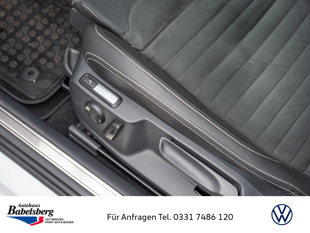 Vorbereitet fuer "We Connect" und "We Connect Plus" oder "VW Connect" und "VW Connect Plus", Notruf-Service, Laufzeit 10 Jahre ab Erstauslieferung, Voraussetzung: Verfuegbarkeit benoetigter Mobilfunknetze, Dekoreinlagen "Piano Black" fuer Mittelkonsole, LED-Leuchte im Fussraum vorn, Schalthebelknauf in Leder