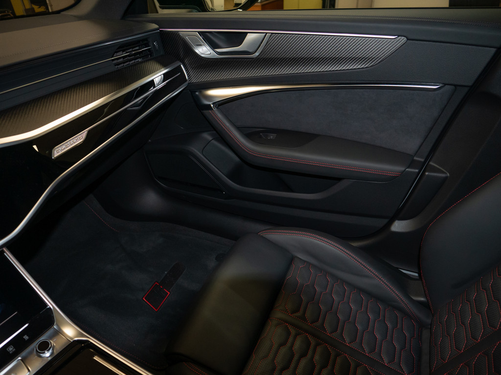 RS-Stahlbremse hinten mit Bremssaetteln in Rot glaenzend RS-Stahlbremse vorn mit Bremssaetteln in Rot glaenzend RS-Stahlbremsanlage mit Bremssaetteln rot, Mittelkonsole seitlich in Alcantara, Tuerverkleidungseinsaetze in Leder, Fussmatten mit RS-Schriftzug, Bedienelemente Alcantara, USB-Anschluesse mit Ladefunktion in erster und zweiter Sitzreihe, Innenausstattung: Interieurelemente in Kunstleder oben und unten, Sonnenblenden vorn, verschiebbar, Bedientasten schwarz glaenzend mit haptischem Feedback und Aluminiumoptik Interieur