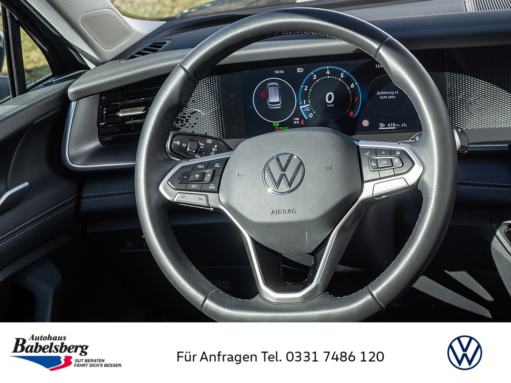 2 Sitzplaetze in 3. Sitzreihe; inkl. Ruecksitzbank und -lehne asymmetrisch geteilt umklappbar, Gepaeckraumboden, ebene Ladeflaeche; mit Staufach, Vorbereitet fuer "VW Connect" und "VW Connect Plus", Design-Leiste in Edelstahl am Dach, Dekor-Set "Life", Notruf-Service, Laufzeit 10 Jahre ab Erstauslieferung, Voraussetzung: Verfuegbarkeit benoetigter Mobilfunknetze, Abgaskonzept, WLTP3 M1, N1-I//EU6EB, Hinterachsgewicht Ausfuehrung 4, Schluesselloses Startsystem "Keyless Start" ohne SAFE-Verriegelung, Infotainment-System mit 32,7-cm-Display (12,9 Zoll)