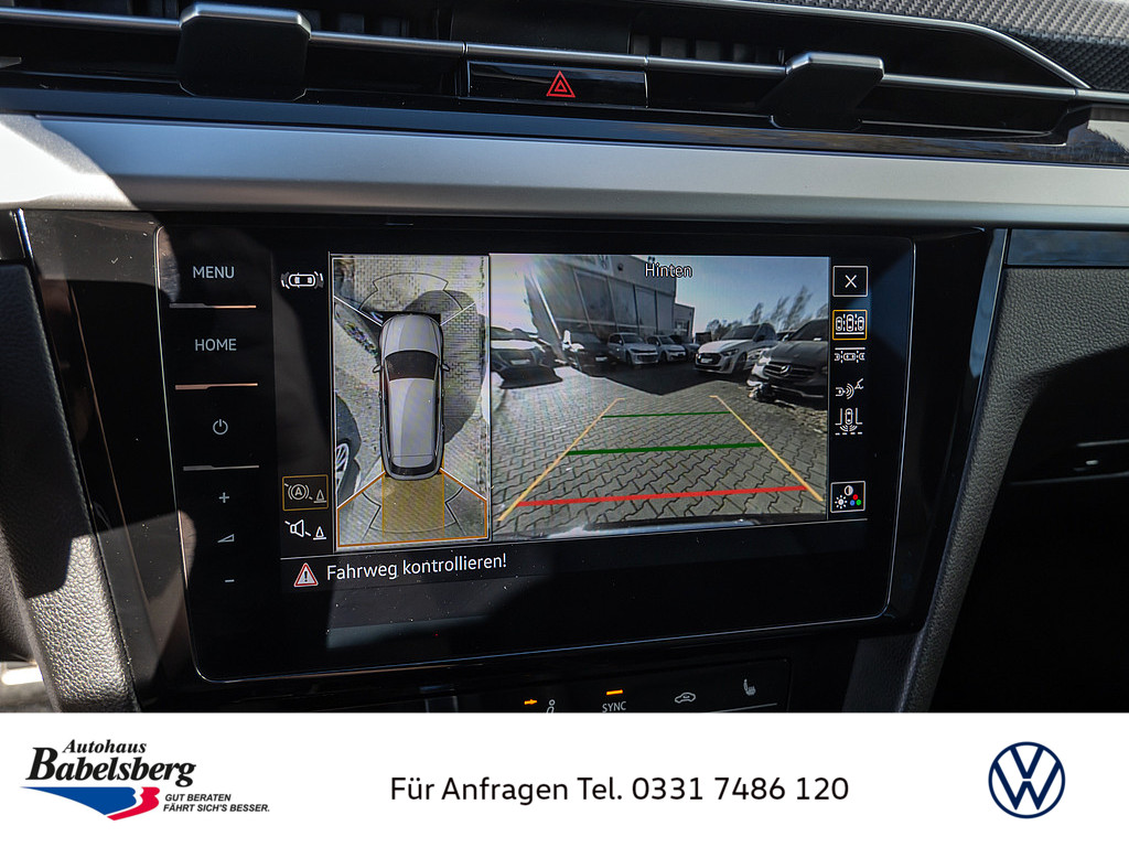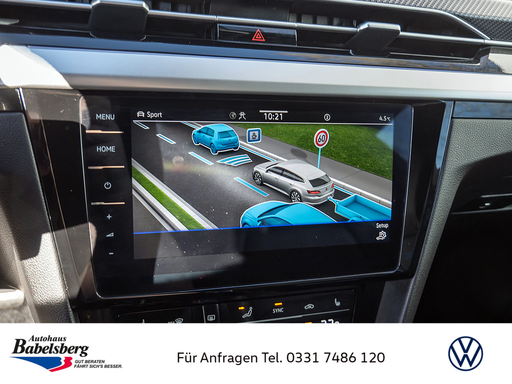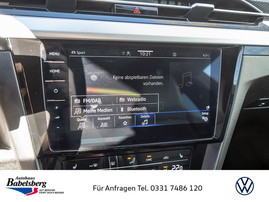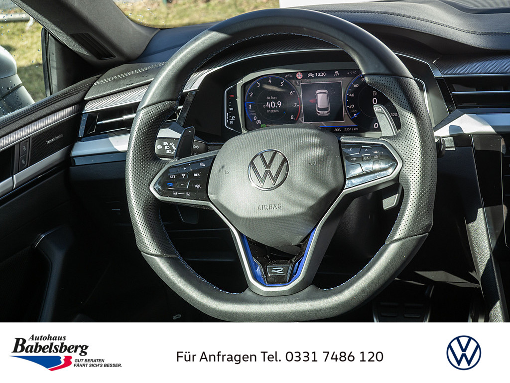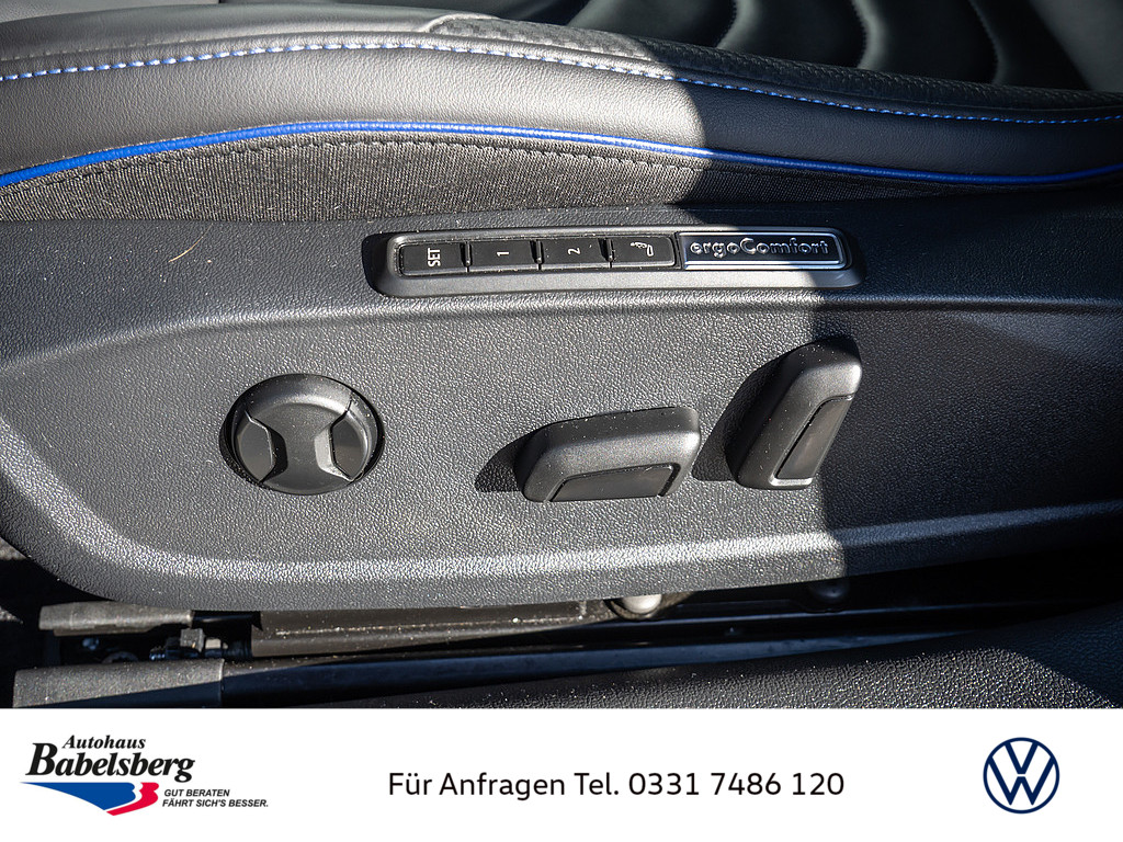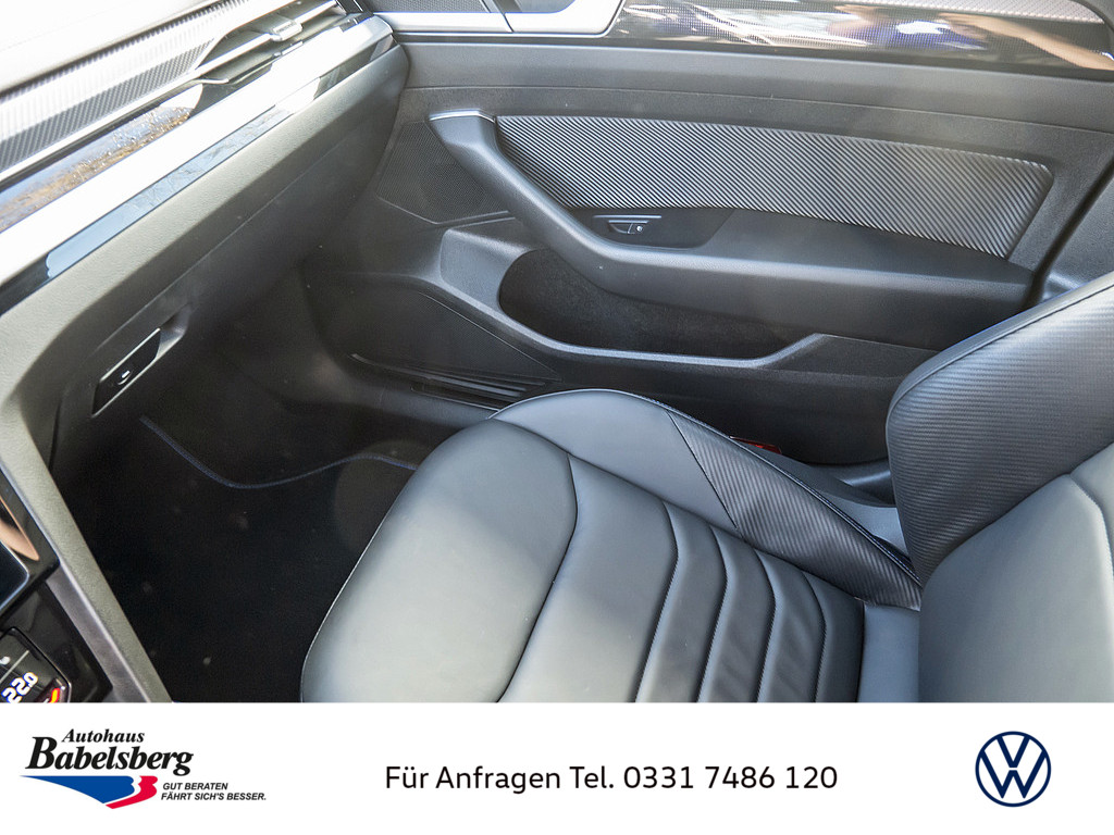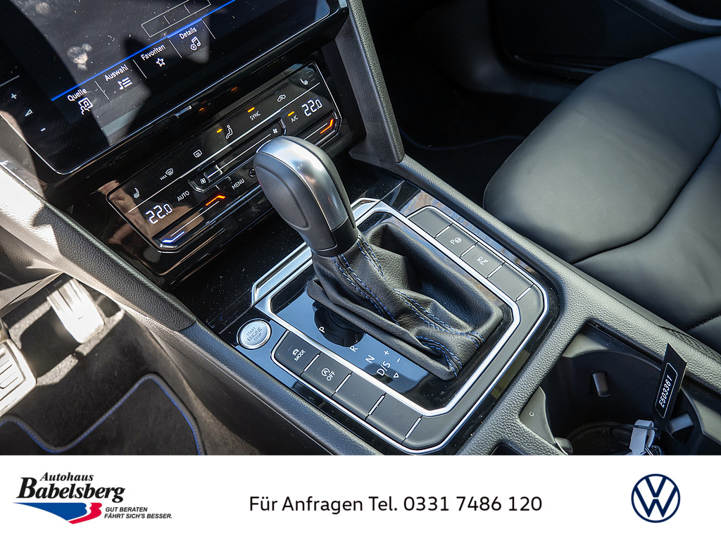 16-Kanal-Verstaerker, Lautsprecher (11), Ausstattung R, Einstiegsleisten in Edelstahl, vorn mit "R"-Logo, Stossfaenger im "R"-Styling, Notruf-Service, Laufzeit 10 Jahre ab Erstauslieferung, Voraussetzung: Verfuegbarkeit benoetigter Mobilfunknetze, Vorbereitet fuer "We Connect" und "We Connect Plus" oder "VW Connect" und "VW Connect Plus", Dekoreinlagen "Black Carbon" fuer Instrumententafel und Tuerverkleidungen, LED-Leuchte im Fussraum vorn, Schalthebelknauf in Leder, Radsicherungen mit erweitertem Diebstahlschutz, Sportback