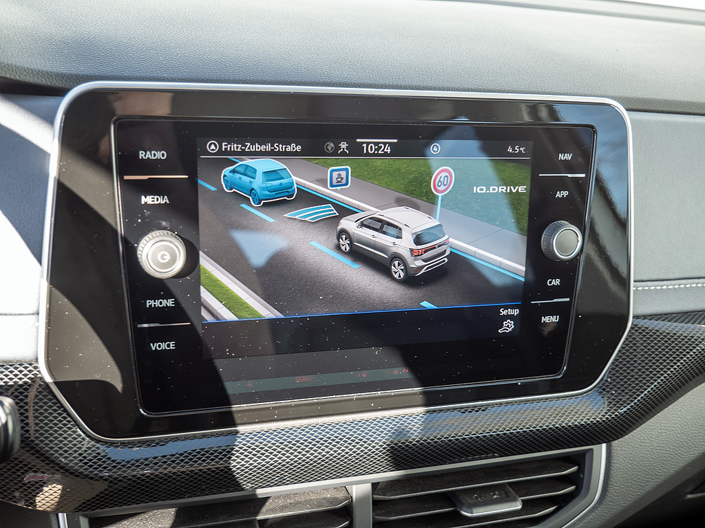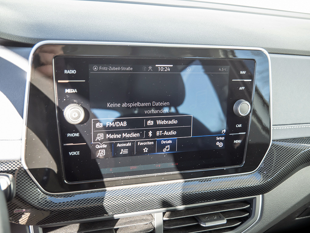 6 Lautsprecher, Vorbereitet fuer "VW Connect" und "VW Connect Plus", Schalthebelknauf in Leder, Notruf-Service, Laufzeit 10 Jahre ab Erstauslieferung, Voraussetzung: Verfuegbarkeit benoetigter Mobilfunknetze, Dekoreinlagen "Style" fuer Instrumententafel