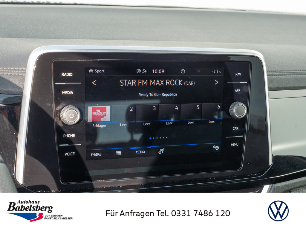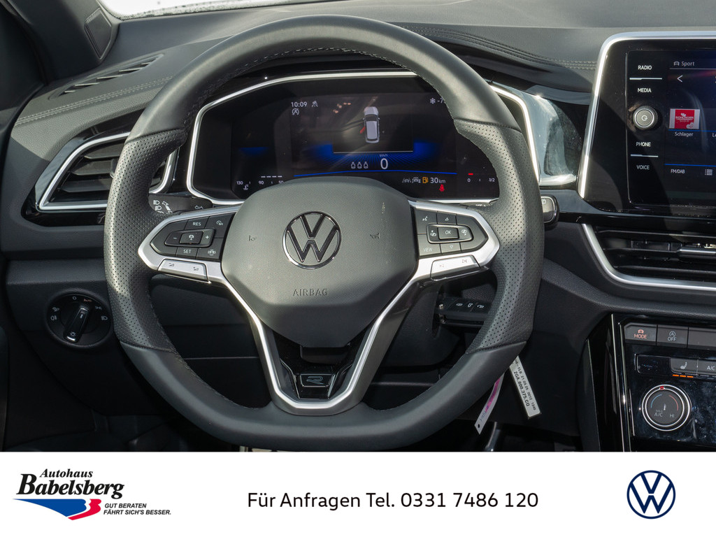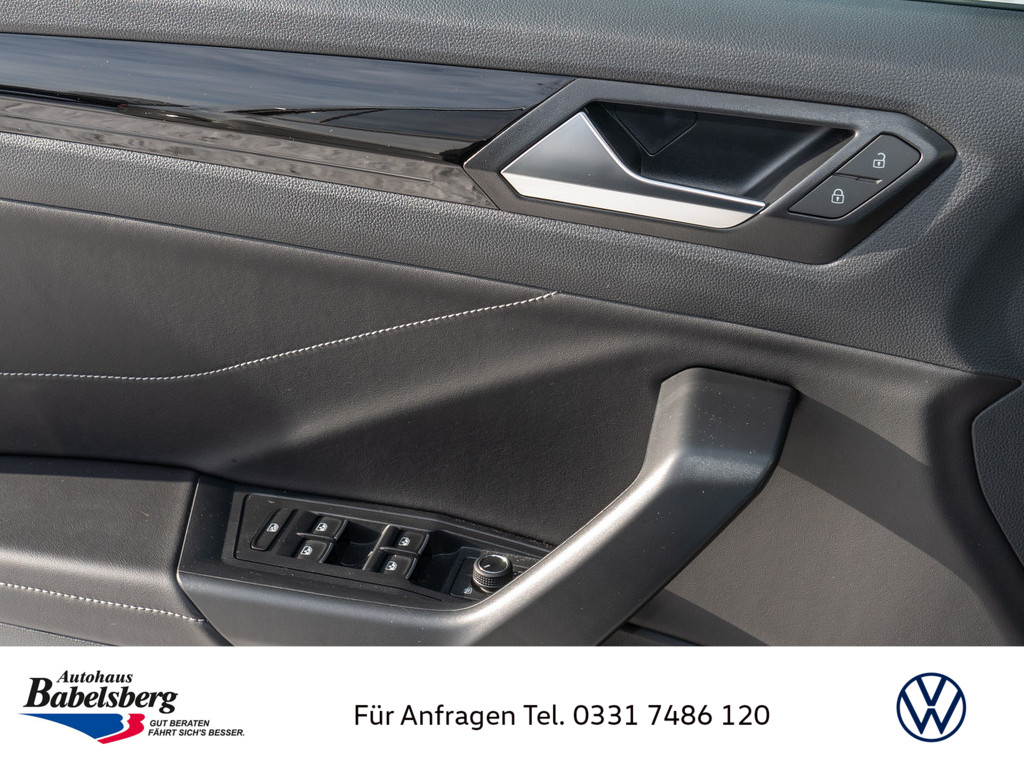 R-Line, Stossfaenger im "R-Line"-Styling, 6 Lautsprecher, Notruf-Service, Laufzeit 10 Jahre ab Erstauslieferung, Voraussetzung: Verfuegbarkeit benoetigter Mobilfunknetze, Vorbereitet fuer "VW Connect" und "VW Connect Plus", Vorbereitet fuer spaetere Freischaltung: Navigationsfunktion "Discover Media", Dekoreinlagen "Lava Stone Black" fuer Instrumententafel, Mittelkonsole und Tuerverkleidungen vorn, Schalthebelknauf in Leder