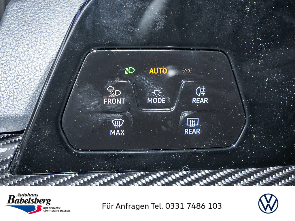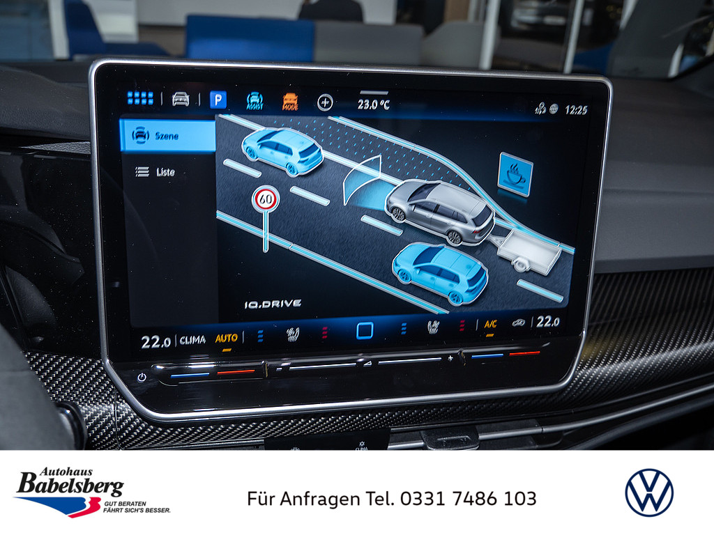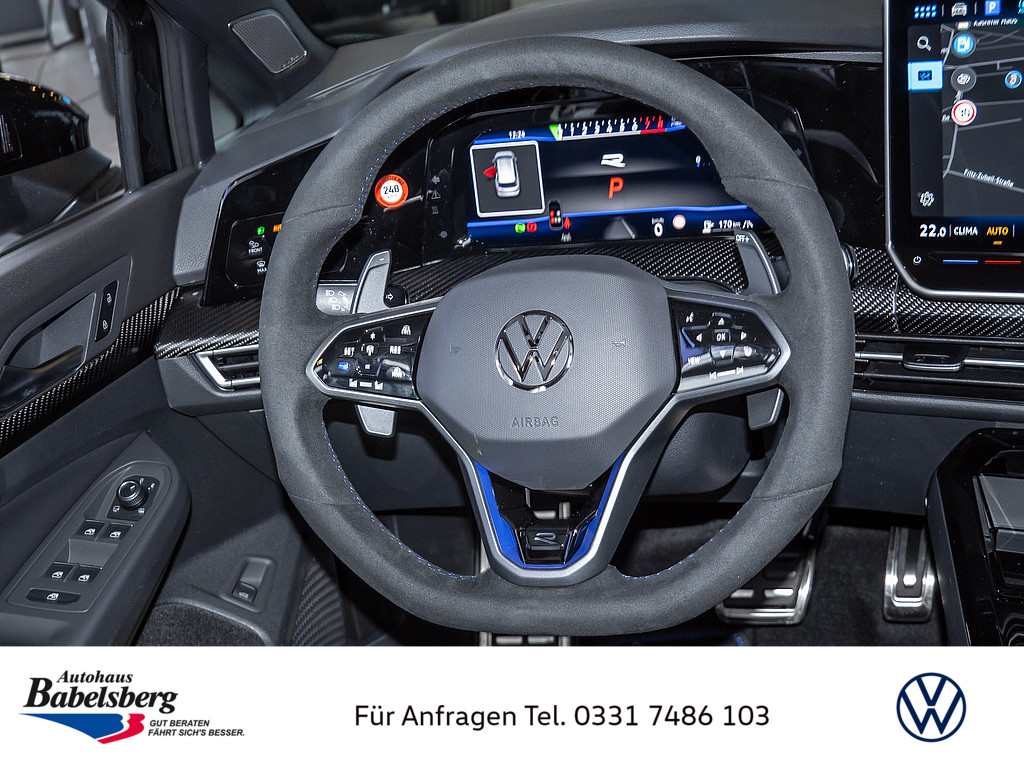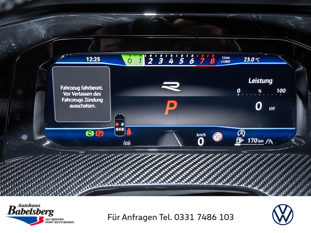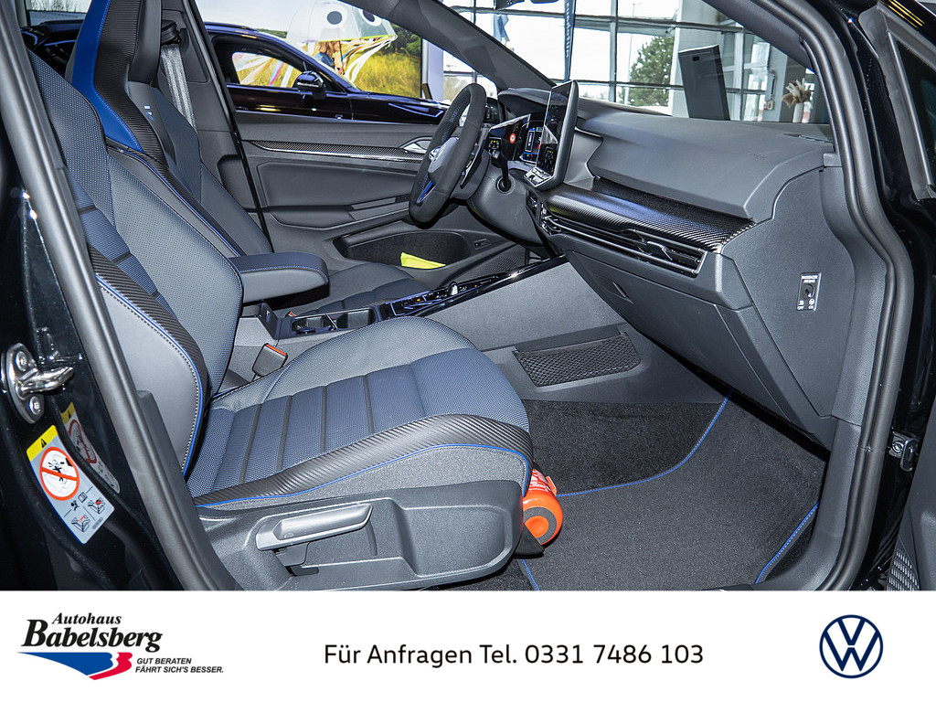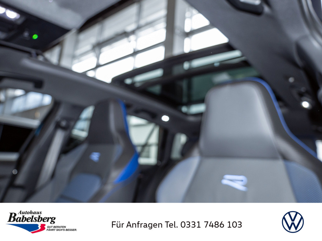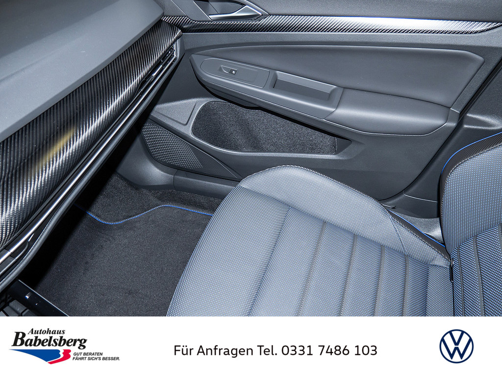 Winterraeder "Bergamo" (zusaetzlich) in Silber lackiert, 4 Leichtmetallraeder 7,5 J x 18, Winterreifen 225 / 40 R 18 V, Dekoreinlagen in Carbon fuer Instrumententafel und Tuerverkleidungen vorn, Technikpaket "Park & Comfort Pro", R-Performance-Paket, Volkswagen R, Auslieferung auf Winterraedern, Schriftzugsatz "R", Radsicherungen mit erweitertem Diebstahlschutz, Beifahrersitzlehne nicht umklappbar, Abgaskonzept, WLTP3 M1, N1-I//EU6EB, Ohne Mode3 Ladekabel, Laendercluster "WLTP EU-Genehmigung", Aufmerksamkeits- und Muedigkeitswarnung mit Fahrerbeobachtungskamera, Vorbereitung Alcohol Interlock, Mit UNECE CS&SU, Notruf-Service, Laufzeit 10 Jahre ab Erstauslieferung, Voraussetzung: Verfuegbarkeit benoetigter Mobilfunknetze