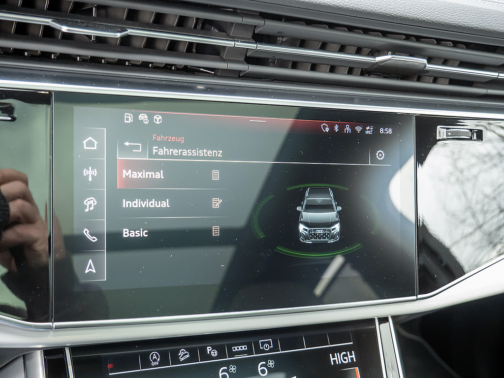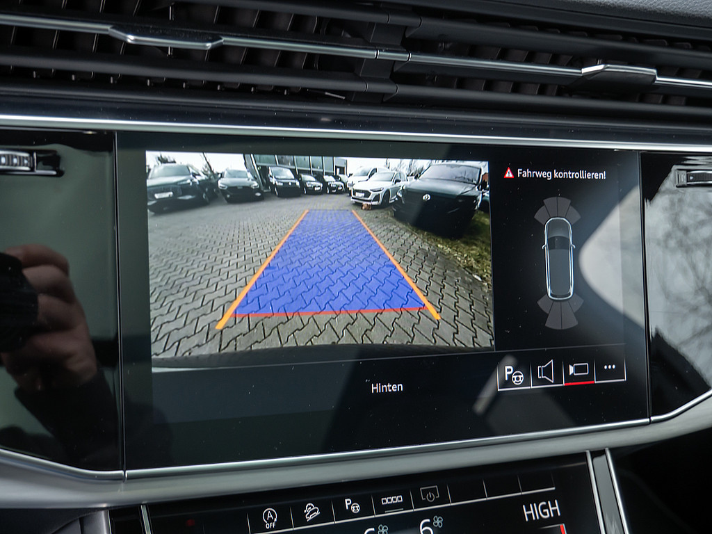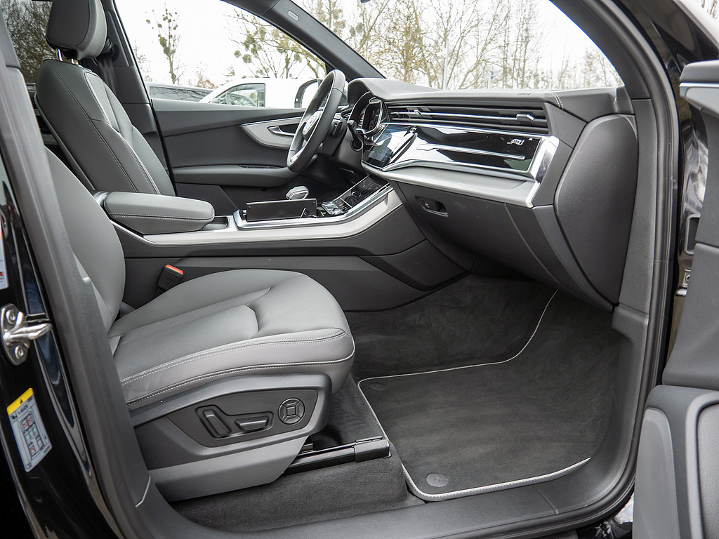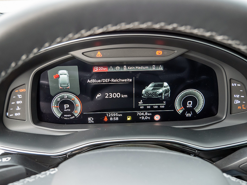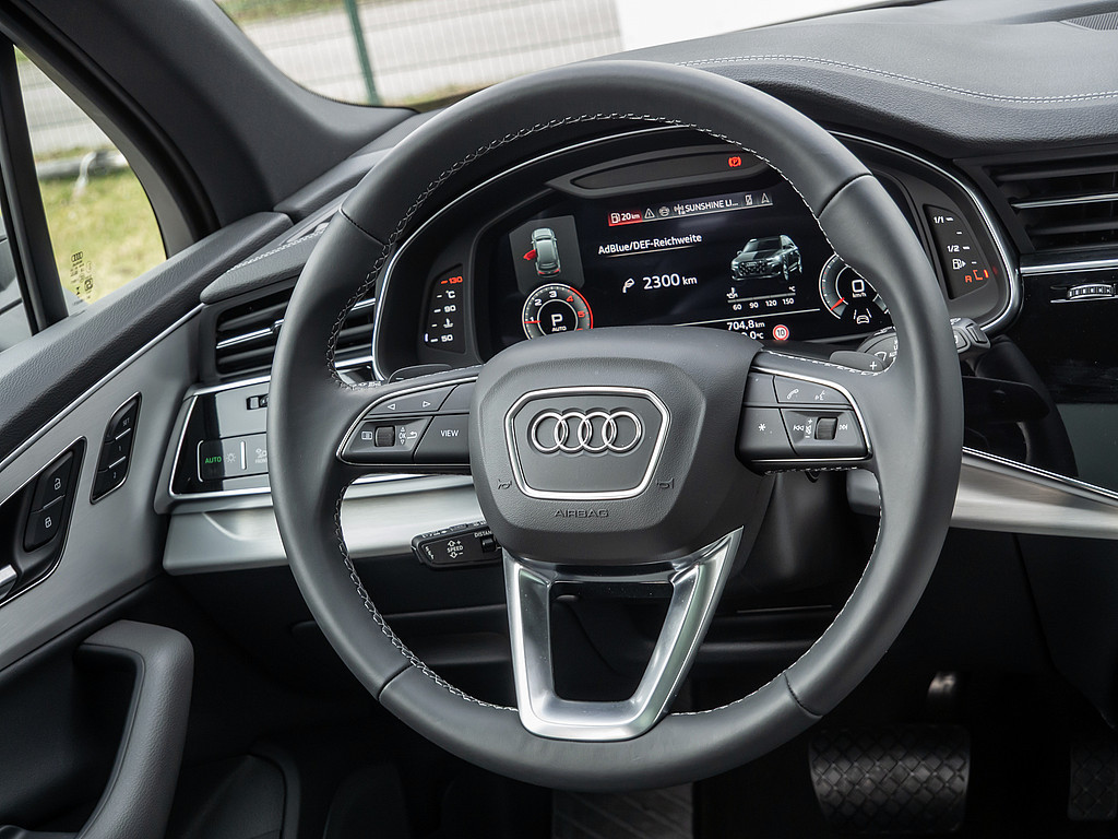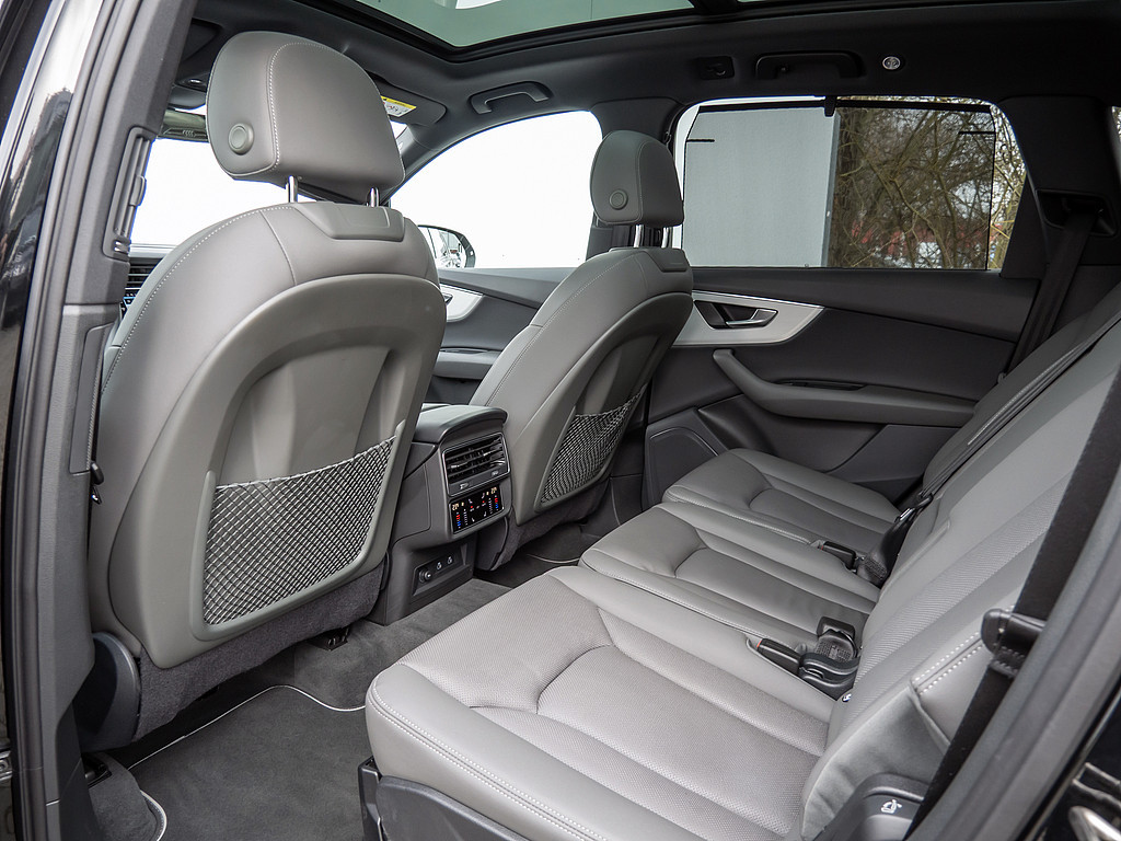 Aussenspiegel elektrisch einstell-, beheiz- und anklappbar, mit Memory-Funktion, Sonnenschutzrollo, Dekoreinlagen Aluminium matt gebuerstet, 3. Sitzreihe, LTE-Unterstuetzung fuer Audi phone box, Ohne Luftqualitaet-Paket, Serviceanzeige 30.000 km oder 2 Jahre (variabel), Bedientasten schwarz glaenzend mit haptischem Feedback und Aluminiumoptik Interieur, Reifen 285/40 R21 109Y xl Rollwiderstandsoptimiert, Datenmodul Europa