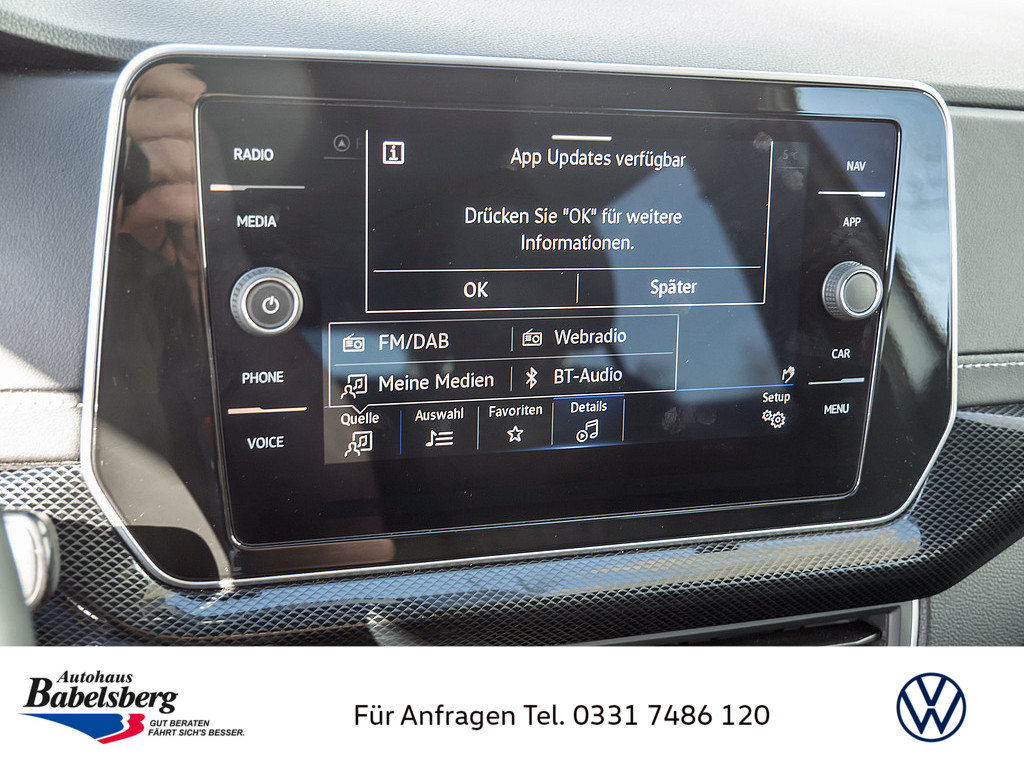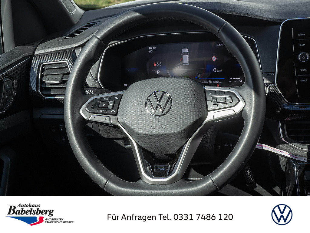 6 Lautsprecher, Vorbereitet fuer "VW Connect" und "VW Connect Plus", Stossfaenger in Wagenfarbe, in sportlichem Design, Schalthebelknauf in Leder, Notruf-Service, Laufzeit 10 Jahre ab Erstauslieferung, Voraussetzung: Verfuegbarkeit benoetigter Mobilfunknetze, Abgaskonzept, WLTP3 M1, N1-I//EU6EB, Dekoreinlagen "R-Line" fuer Instrumententafel