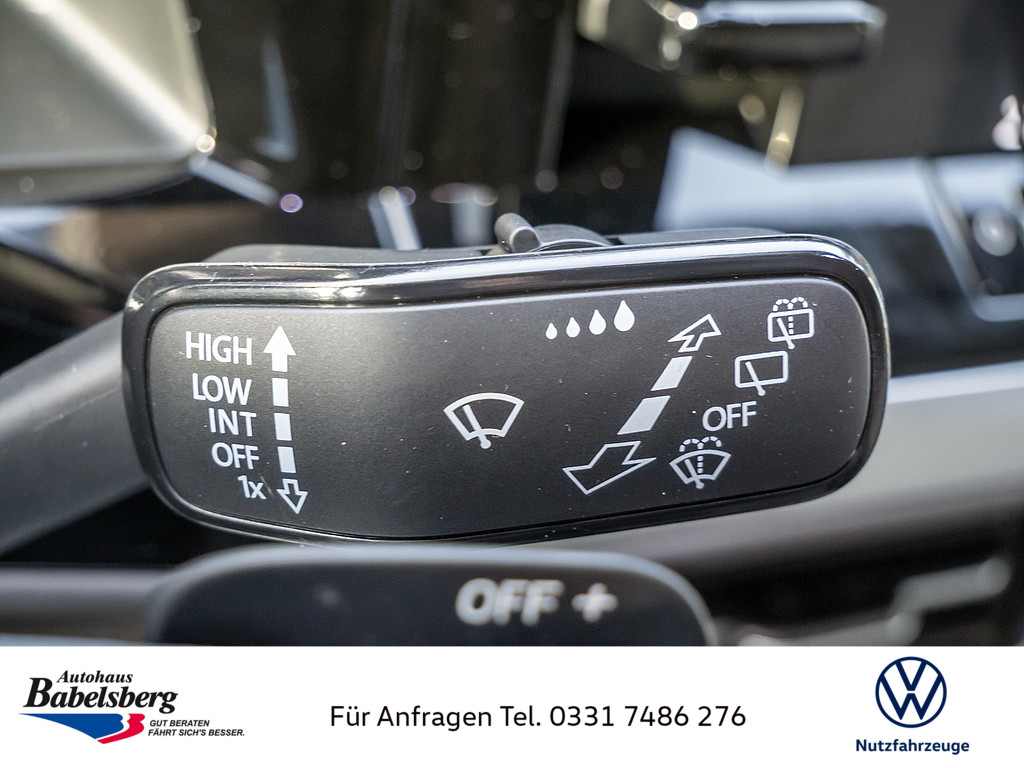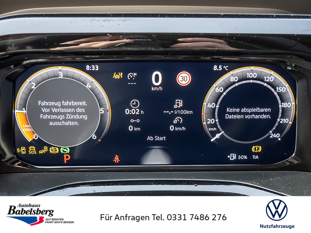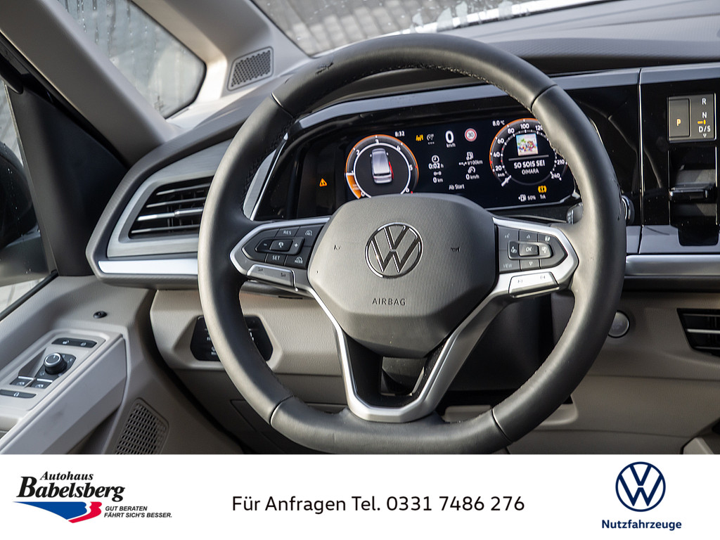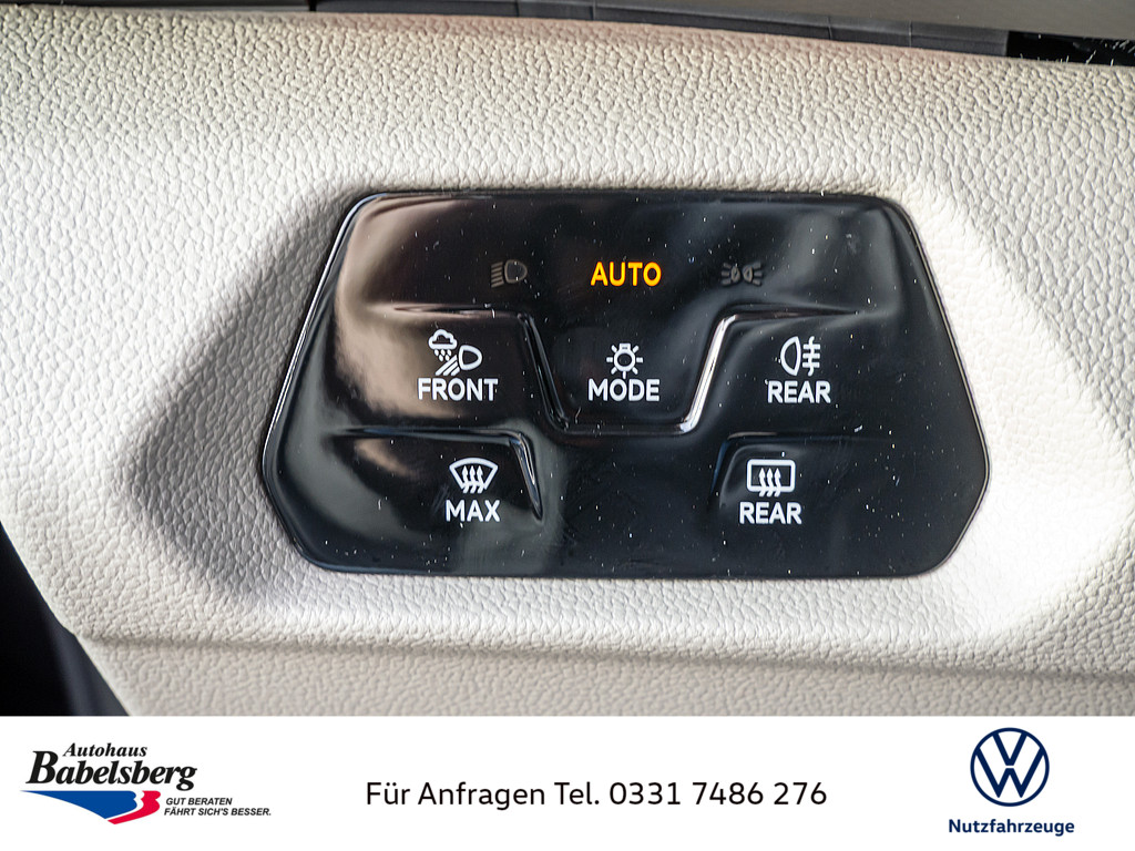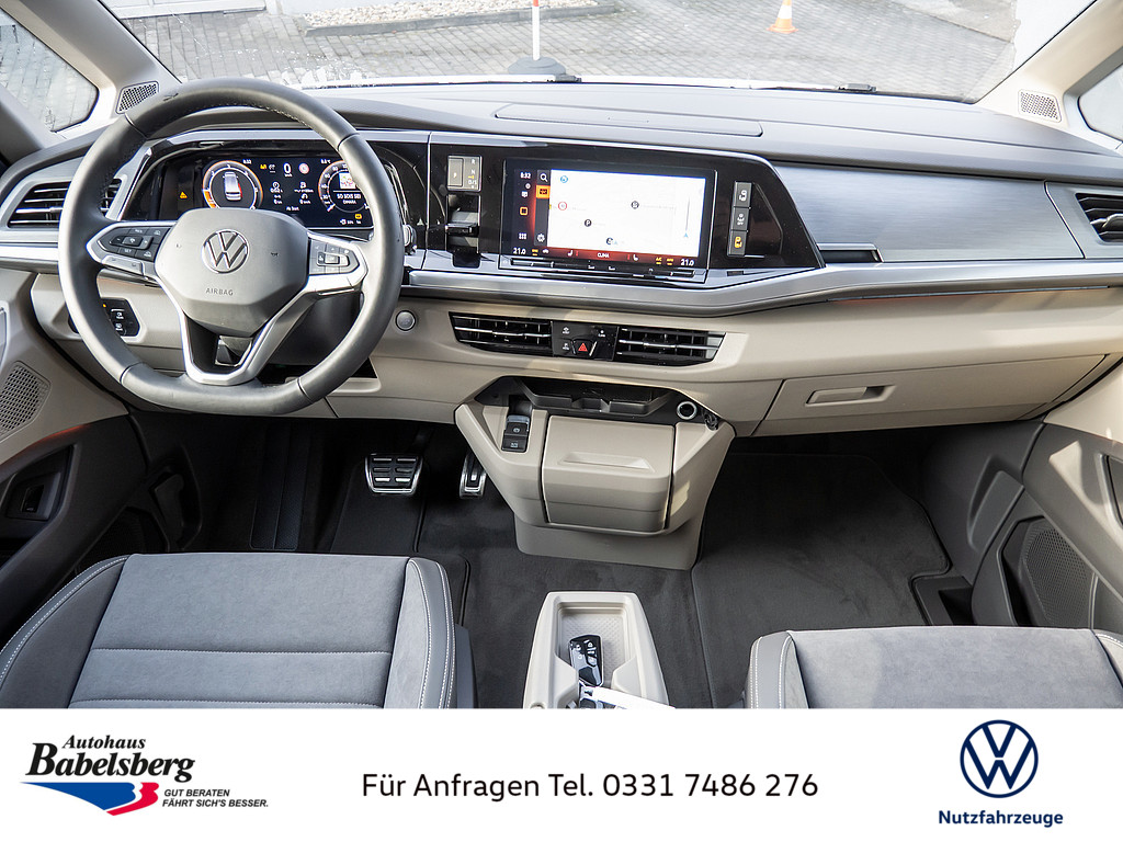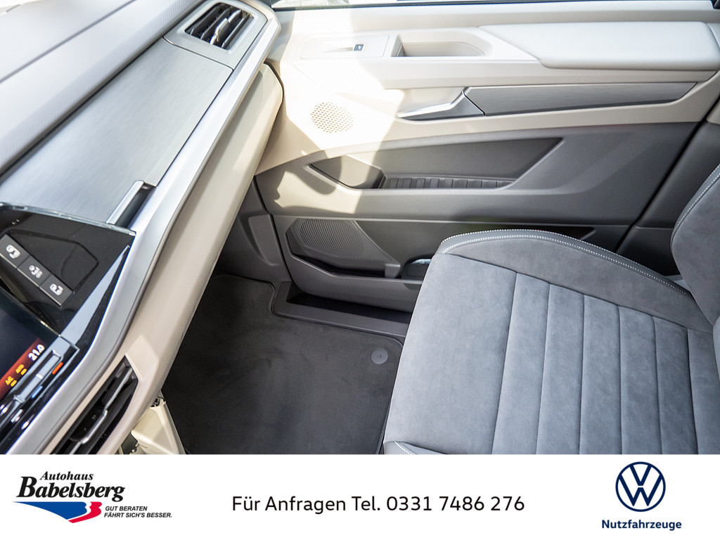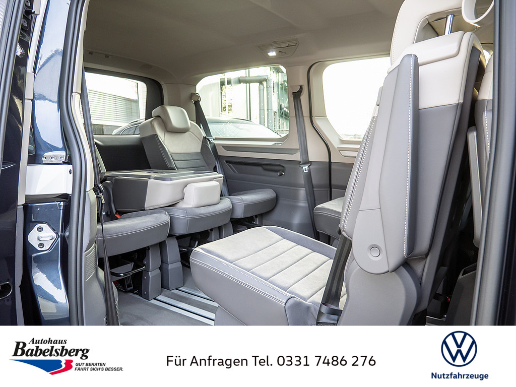 Parkpaket Basic, Easy Open Paket Basic, Chromleisten an den Seiten und am Heck, Vorbereitet fuer VW Connect und VW Connect Plus, Aktionsmodell "75 Jahre Bulli" inklusive ABH-Produkt: Folierung, 7 Sitzer-Paket = 2-2-3, Vis-a-Vis, mit 4 Armlehnen beidseitig an 2.SR, Ueberhang hinten, lang, 16" Scheibenbremsen vorn und 16" Scheibenbremsen hinten, Fahrzeugklassen-Differenzierung -7T0-, Schlosstraegerabdeckung aus Kunststoff, Zusaetzliche Innengeraeuschdaempfung Plus, Abgaskonzept, WLTP3 M1, N1-I//EU6EB, Bodenbelag im Fahrgastraum mit trittverstaerktem Velours-Teppichboden, ohne Verdunkelungssystem, Transportschutzmassnahmen ohne Oberflaechenschutz (nur Tuerkanten-/Griffschutz, Stossfaenger Pad), Personenerkennung, nur Anzeige, Aussenspiegelgehaeuse in Schwarz hochglanz, Leiste zwischen den Scheinwerfern Schwarz glaenzend lackiert mit zwei Chromleisten, Ohne Mode 3 Ladekabel, Optionsinfotainment (MIB3 MP) Ausf.1, Ohne Zusatzgeraete Wegstreckenmessung, Ohne Not-Alarmanlage fuer Taxi/funk mietwagen, Laendercluster "WLTP EU-Genehmigung", Vorbereitung Alcohol Interlock, ohne Kueche und Technikbox, Mit UNECE CS&SU, Ohne Photovoltaik Anlage