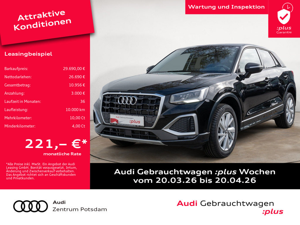 *Ein unverbindliches Leasingangebot der Audi Leasing GmbH, Gifhorner Straße 57, 38112 Braunschweig. Das Angebot richtet sich an Privatkunden und Geschäftskunden. Alle Preise inkl. 19% Mehrwertsteuer. Fahrzeugpreis: 29.690,00 EUR, Nettodarlehensbetrag: 26.690,00 EUR, Einmalige Leasingsonderzahlung: 3.000,00 EUR, Laufzeit: 36 Monate, Laufleistung p.a.: 10.000 km, monatliche Leasingrate: 221,00 EUR, Sollzins p.a.: 2,13%, effektiver Jahreszins: 2,13%, Gesamtbetrag: 10.956,00 EUR (Summe aus Leasingsonderzahlung und monatlichen Leasingraten), Minderkilometer: 3,69 Cent/km, Mehrkilometer: 10,00 Cent/km, Freigrenze: 2.500 km.