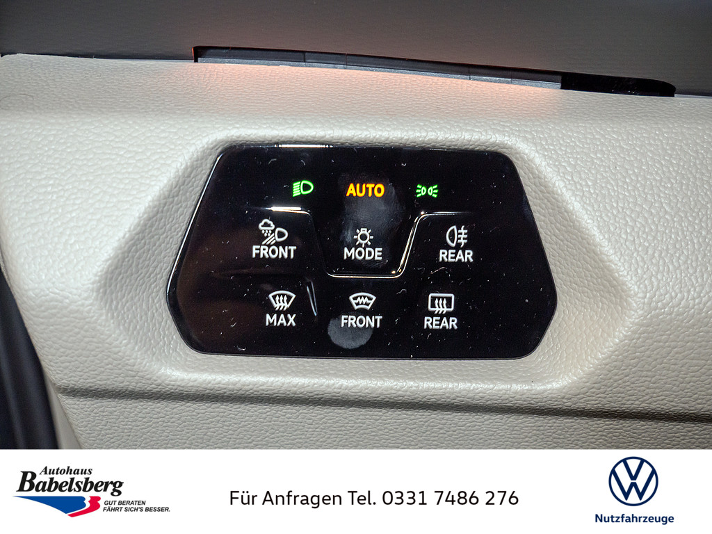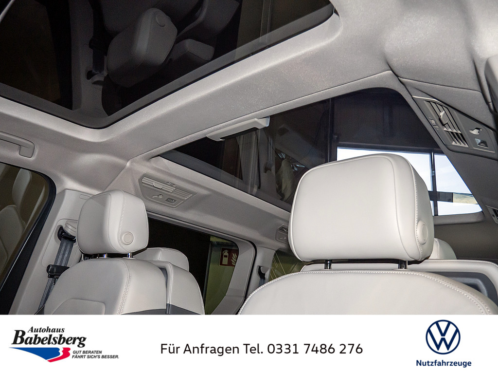 4 Fahrzeugschluessel, Parkpaket Advanced, 7 Sitzer-Paket = 2-2-3, Vis-a-Vis, mit 4 Armlehnen beidseitig an 2.SR, Easy Open Paket Advanced, Ueberhang hinten, lang, 17" Scheibenbremsen vorn und 16" Scheibenbremsen hinten, Fahrzeugklassen-Differenzierung -7T0-, Schlosstraegerabdeckung aus Kunststoff, Abgaskonzept, WLTP3 M1, N1-I//EU6EB, ohne Verdunkelungssystem, Transportschutzmassnahmen ohne Oberflaechenschutz (nur Tuerkanten-/Griffschutz, Stossfaenger Pad), Personenerkennung, nur Anzeige, Aussenspiegelgehaeuse in Schwarz hochglanz, Ohne Mode 3 Ladekabel, Optionsinfotainment (MIB3 MP) Ausf.1, Ohne Zusatzgeraete Wegstreckenmessung, Ohne Not-Alarmanlage fuer Taxi/funk mietwagen, Drehstromgenerator 230 A, Laendercluster "WLTP EU-Genehmigung", Vorbereitung Alcohol Interlock, ohne Kueche und Technikbox, Mit UNECE CS&SU, Ohne Photovoltaik Anlage